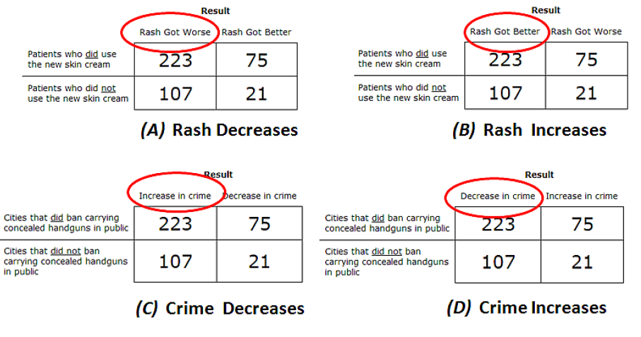 What the new study did was muck about with some data. There was a control situation that asked people to evaluate the effectiveness of a skin cream. In that circumstance they are presented a chart like the following: