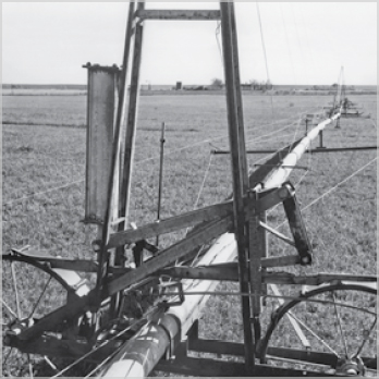 Photo/Image Credits: Center pivot system: USDA, via Wikipedia; Kansas fields: U.S. satellite image via Wikipedia; Center pivot prototype: T-L irrigation; Jim Groom as EDUPUNK: bavatuesdays; Tree-trunk roller: Jonnie Hughes.
