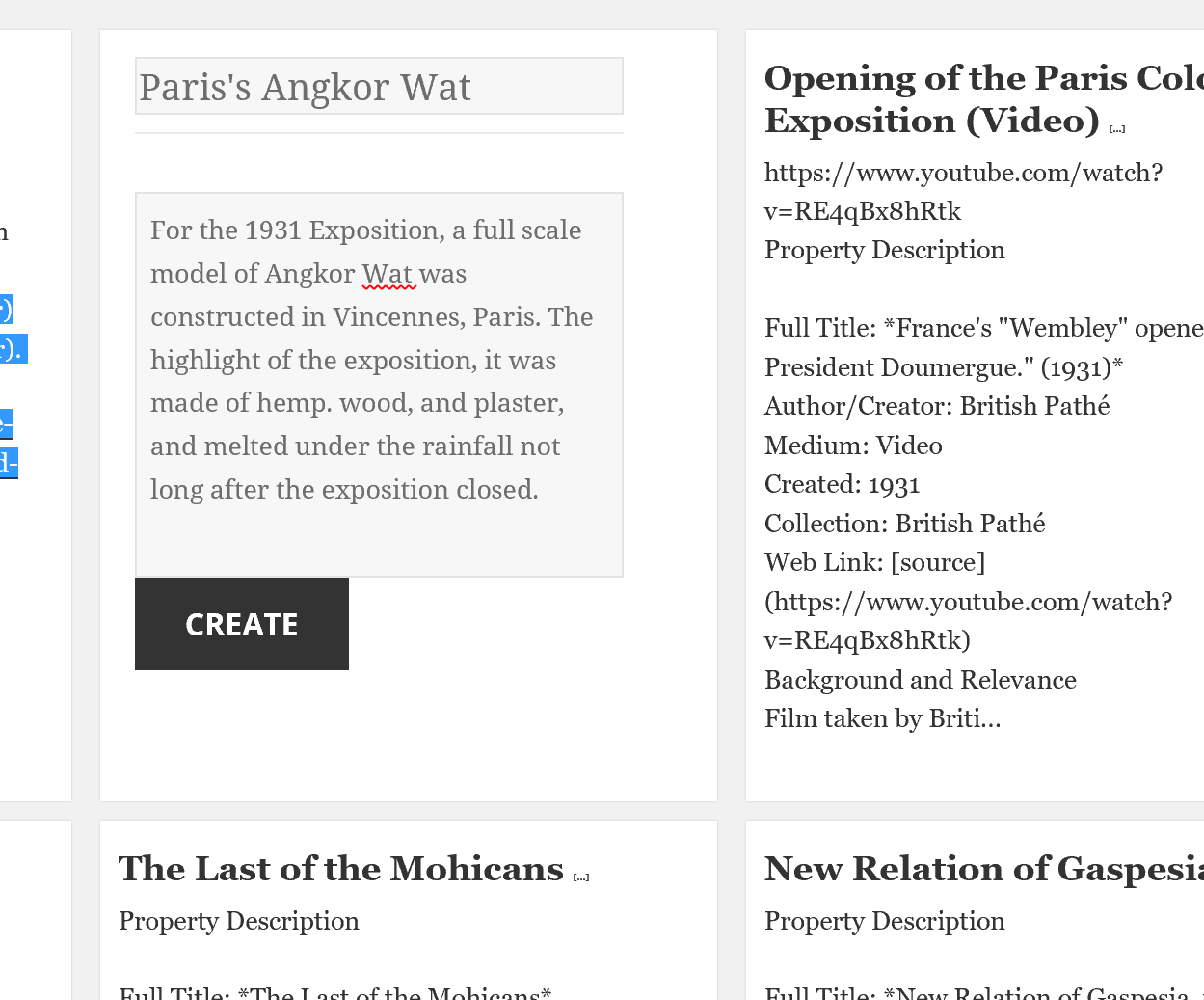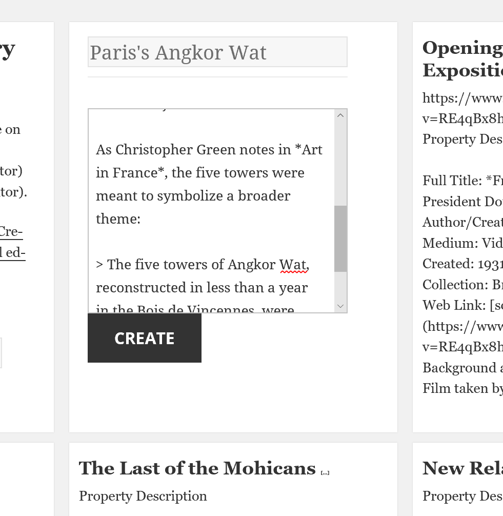 So we make a page. Here we’re going to take some notes for a class on colonialism. We’re researching the 1931 Paris exhibition (one of the last of the “human zoos”) and we want to research and record what we can on the full-scale model of Angkor Wat which was constructed in Paris for the event.