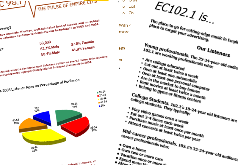 To help fill out that spreadsheet, you are given a bunch of email attachments about the demographics of each potential media buy. These are structured to look like the actual media kits you would get from radio stations and newspapers, and the information you need isn’t always directly there — you sometimes have to derive it. It’s a good example of using authentic resources that don’t map easily to inputs, to test whether students have a deep or shallow understanding of a domain.