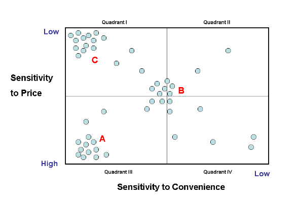 Those seemingly simple questions lead to complex activities like competitive analysis, and understanding barriers to entry, etc. You’re asked to make sense of a variety of resources to determine whether the business as imagined is truly viable (and if it’s not, how can it be altered to be more successful). Here’s a cluster diagram of some of your survey results. What does this tell you about your current plan? Have you selected the correct target market?