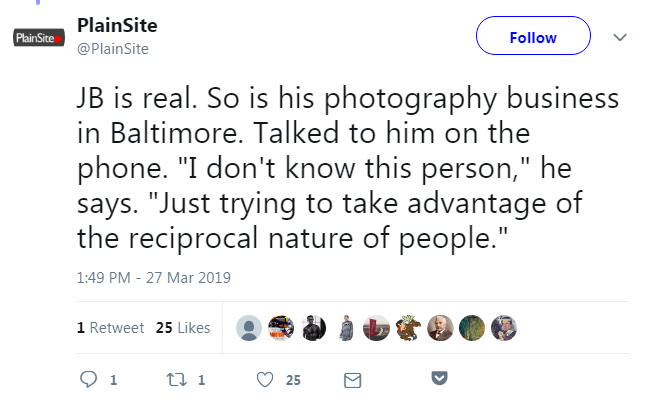 Joshua’s Twitter bio claims that he’s a person running a journalism project at Harvard, so it’s a bit weird he’s obscuring what he looks like. Definitely fishy!