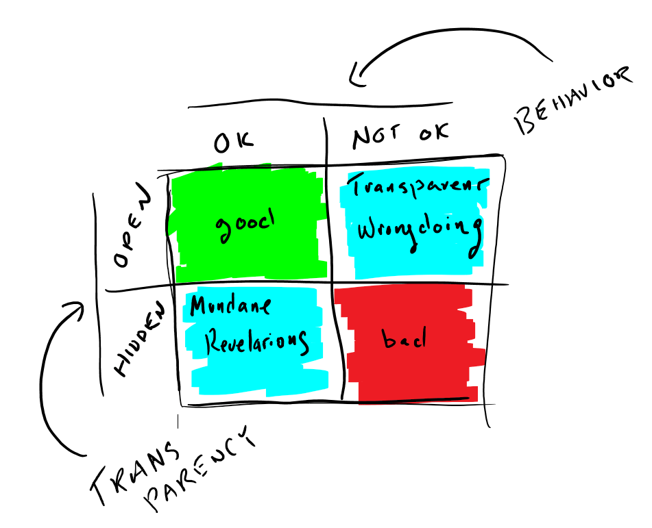 But in politics and business, coverups are damaging in another way. The truth is that individuals have very little idea what constitutes acceptable behavior in these realms. Suppose someone overheard someone in their office talking about non-public information about a company whose stock they owned. They then called and sold that stock. Is that legal or illegal? People don’t know. So people use a simple signal — If the person tried to hide it, it was probably wrong. If they didn’t, it was probably no big deal. Looking at the behavior is easier than looking through insider trading law for most people.